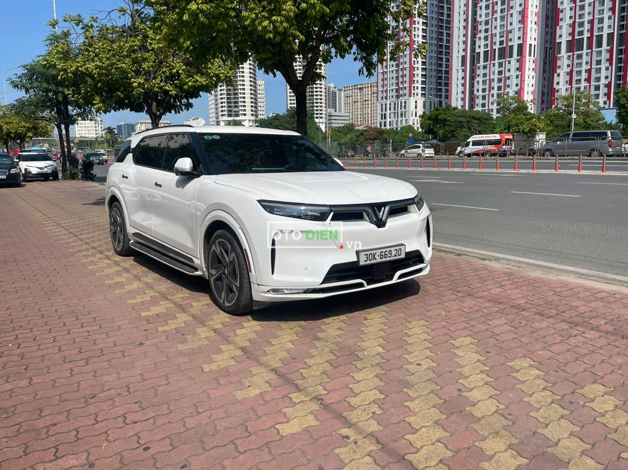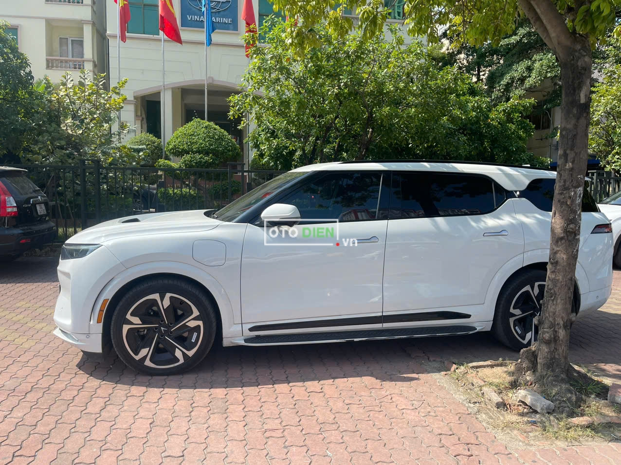 VF9 plus màu trắng nội thất nâu bản 6 ghế trần thép